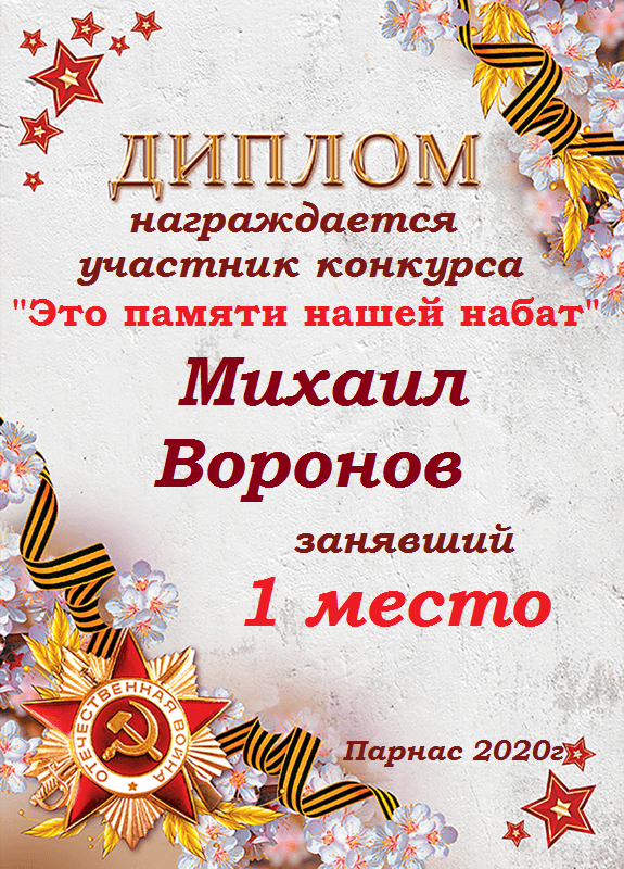 За победу в конкурсе "Это памяти нашей набат". Поздравляем с Днём Великой Победы!