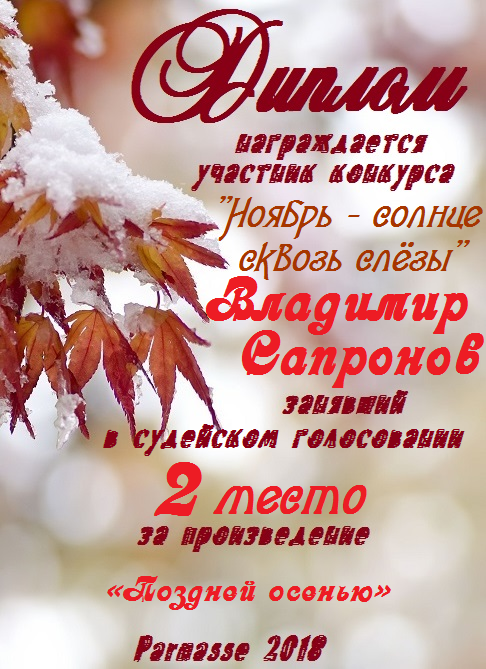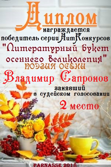 Поздравляем с занятым 3 местом в ЛИТКОНКУРСе «Золотом рассыпался сентябрь.,,», номинация – Поэзия (народное голосование)!