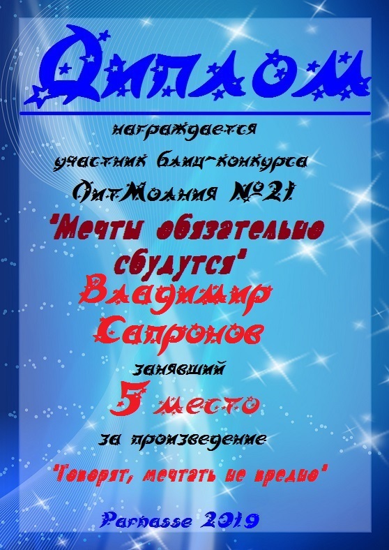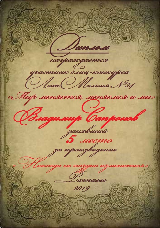 Пятое место в Блиц-конкурсе №34 " Мир меняется, меняемся и мы" за произведение «Никогда не поздно измениться ». Поздравляем!