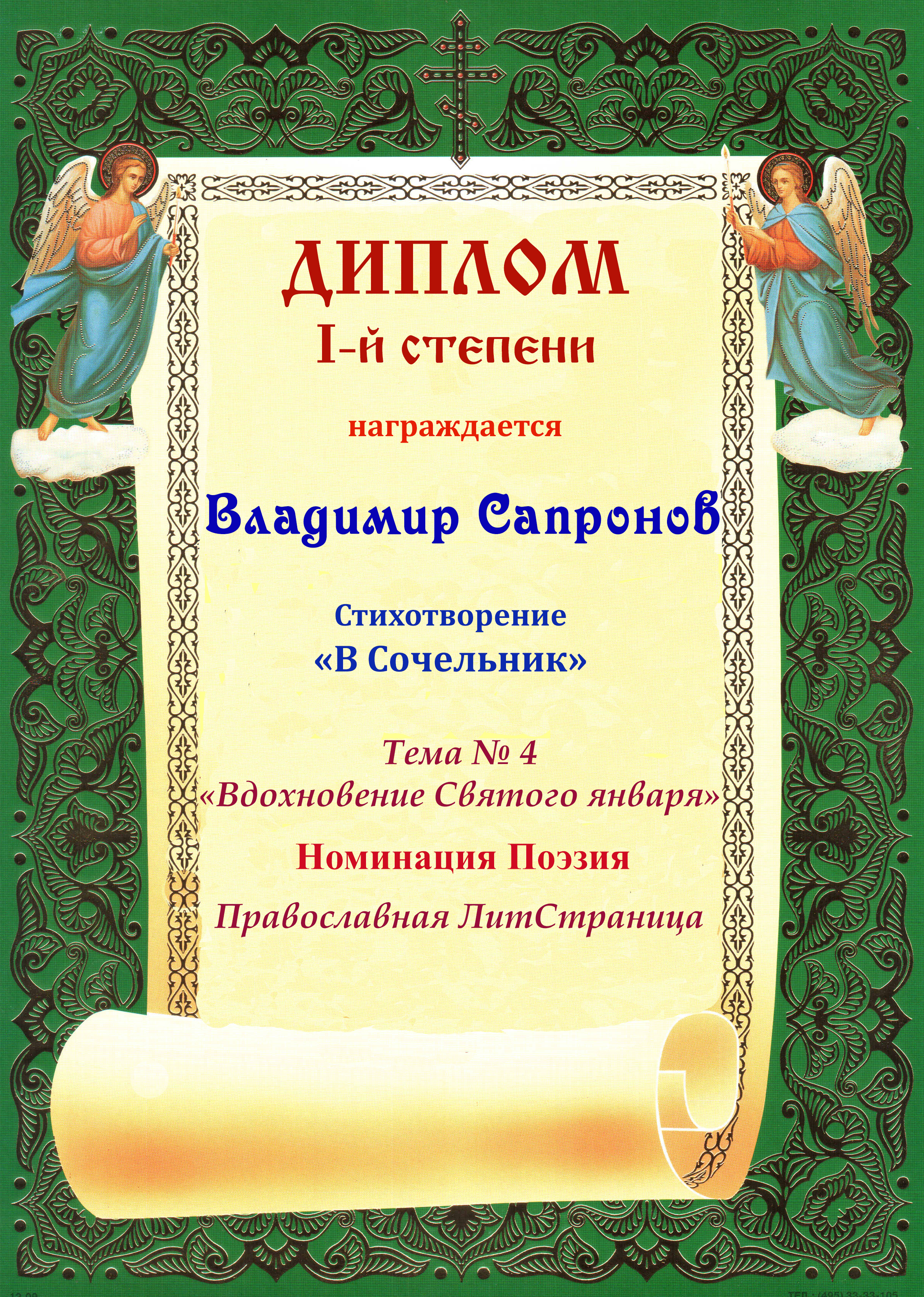 Лауреат I-й степени Православной ЛитСтраницы, Тема №3 "За семью возжгу свечу". Номинация ПОЭЗИЯ.
