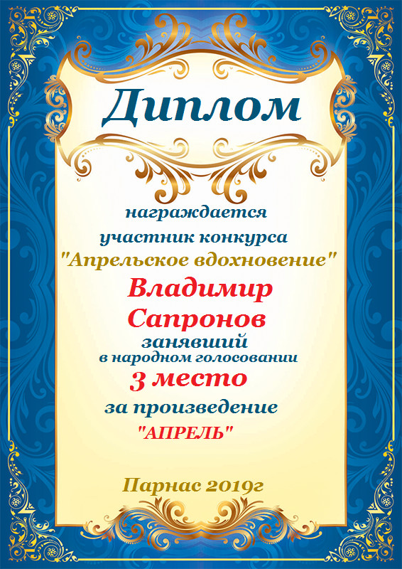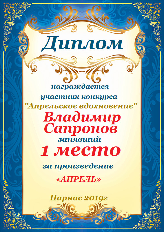 Первое место в конкурсе "Апрельское вдохновение", судейское голосование. Поздравляем с прекрасной победой!