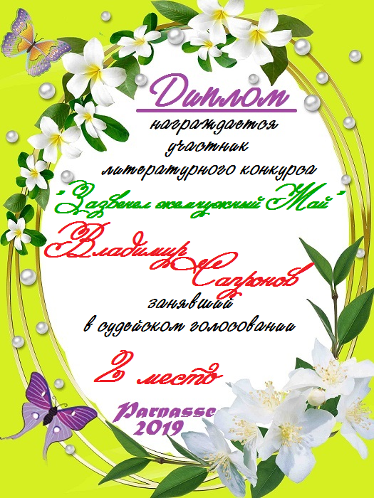 Второе место в конкурсе "Зазвенел жемчужный Май", судейское голосование. Поздравляем с прекрасной победой!