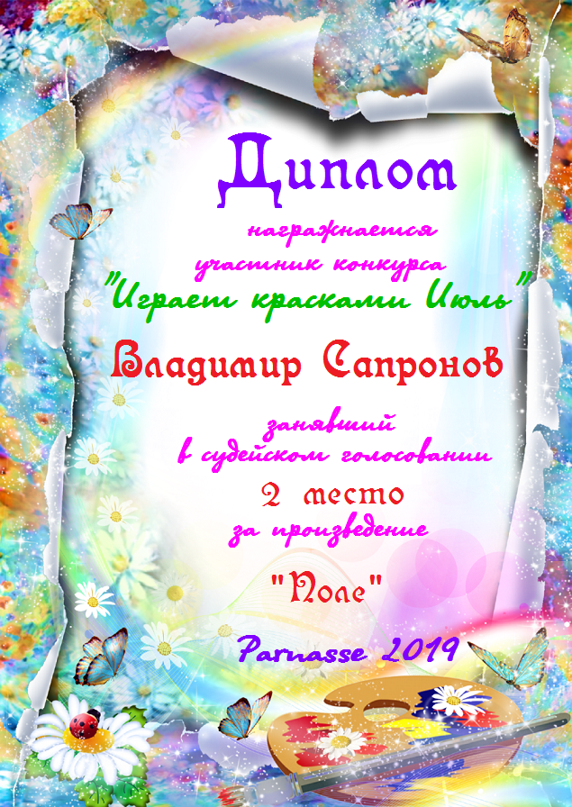 Второе место в конкурсе "Играет красками Июль", судейское голосование. Поздравляем с прекрасной победой!