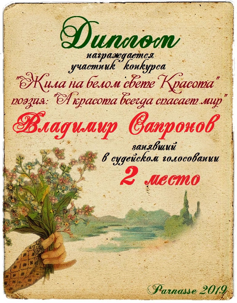 Второе место по итогам конкурса " А красота всегда спасает мир", судейское голосование. Поздравляем с прекрасной победой!
