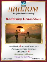 ![]() Медаль за 3 место в конкурсе "ЛитКомета - Полёт № 97"