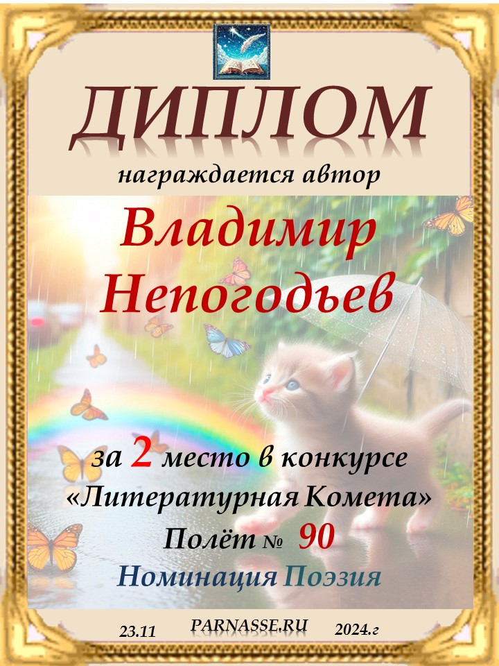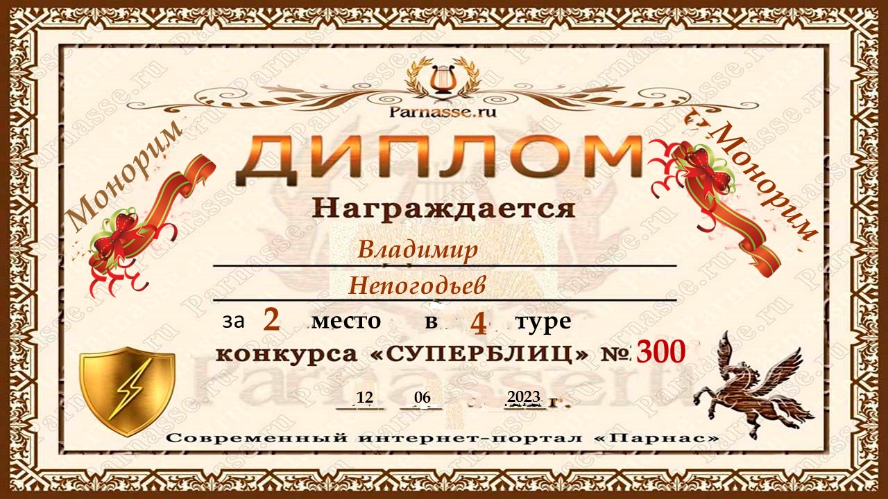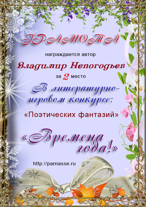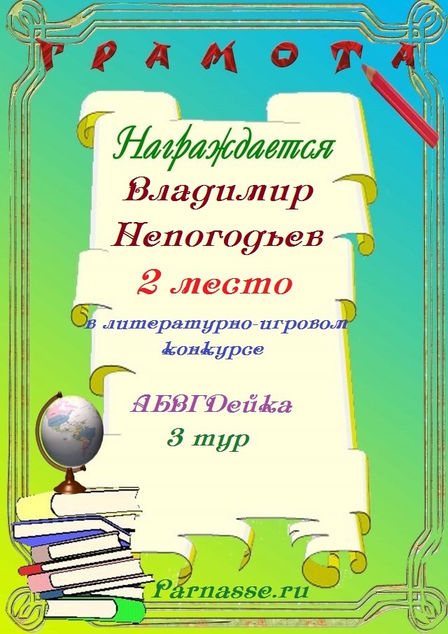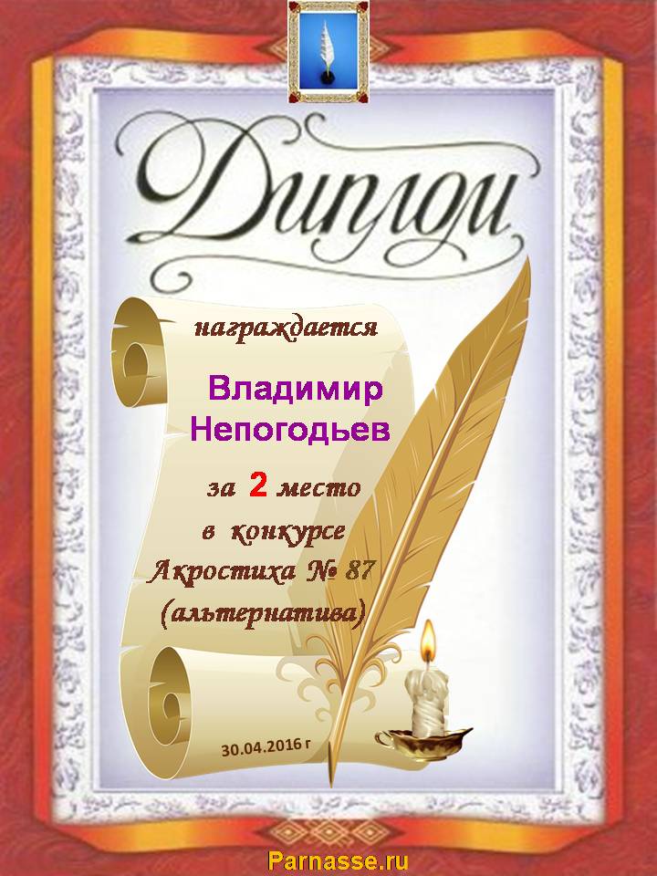 Диплом за 2 место в 119 конкурсе АКРОСТИХА (Альтернатива)! ПОЗДРАВЛЯЮ!