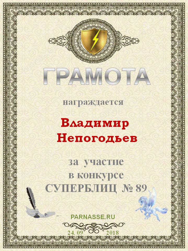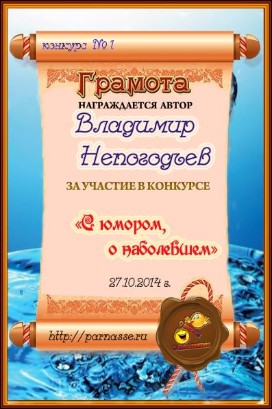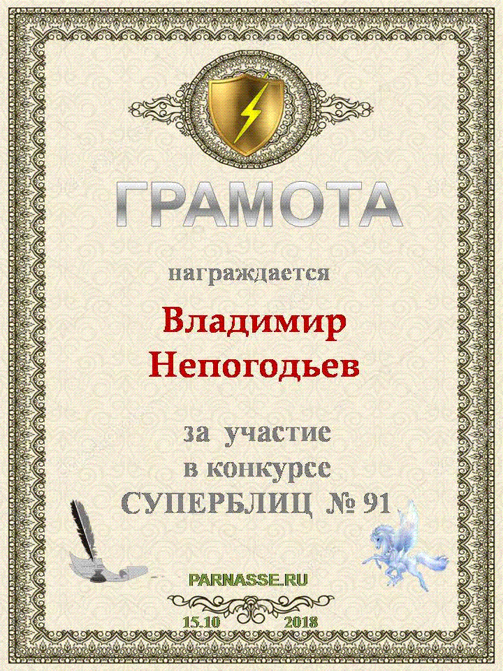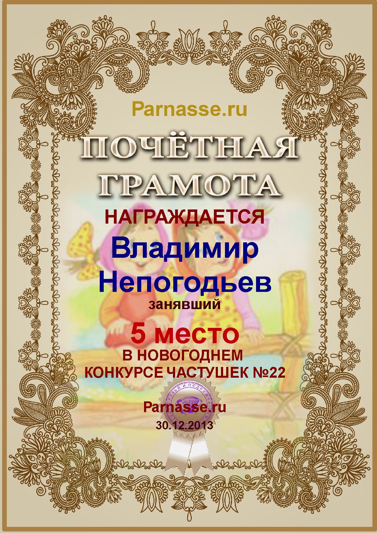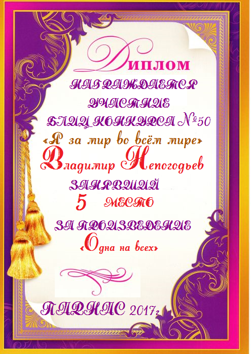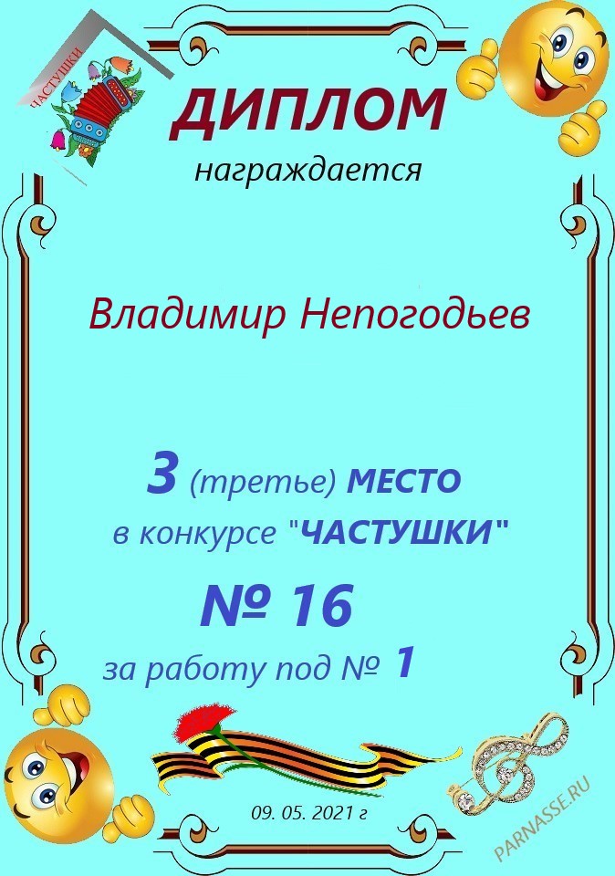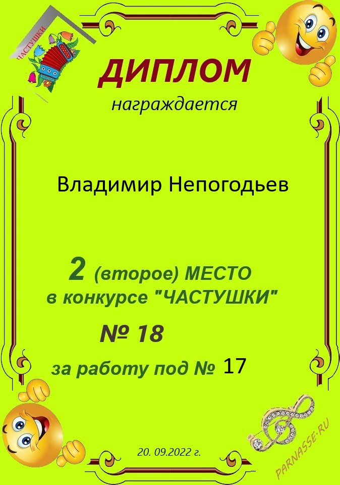 Грамота за 5 место в конкурсе частушек № 8++. Поздравляю, Владимир!