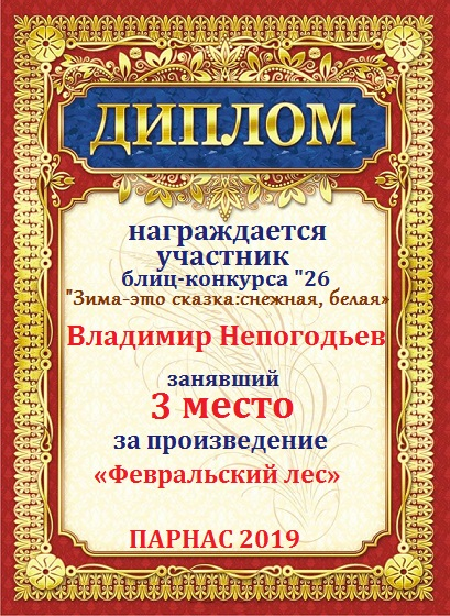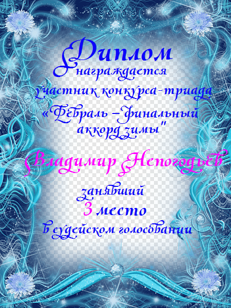 Диплом за 1 место в фотоконкурсе "Чудес морозных очарование"