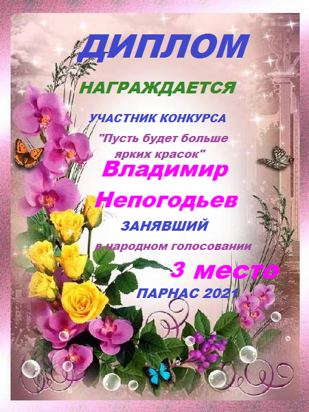 СПАСИБО ВОЛОДЯ ЗА ПОСТОЯННОЕ УЧАСТИЕ В НАШИХ КОНКУРСАХ!