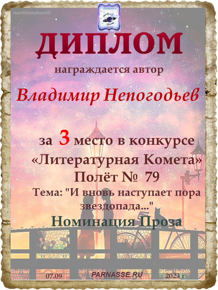 ДИПЛОМ ЗА ТРЕТЬЕ МЕСТО В КОНКУРСЕ "ЛЮБОПЫТСТВО". Проза
