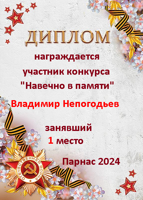 Первое место по решению Администрации и Главного судьи конкурса "Навечно в памяти"