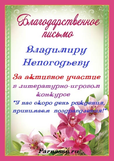 Номинация "Лучшее стихотворное поздравление Парнасу". Уважаемый Владимир!