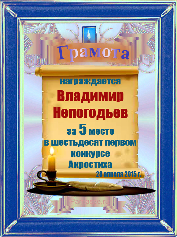 Грамота за 5 место в 131 конкурсе АКРОСТИХА (Альтернатива)! ПОЗДРАВЛЯЮ!