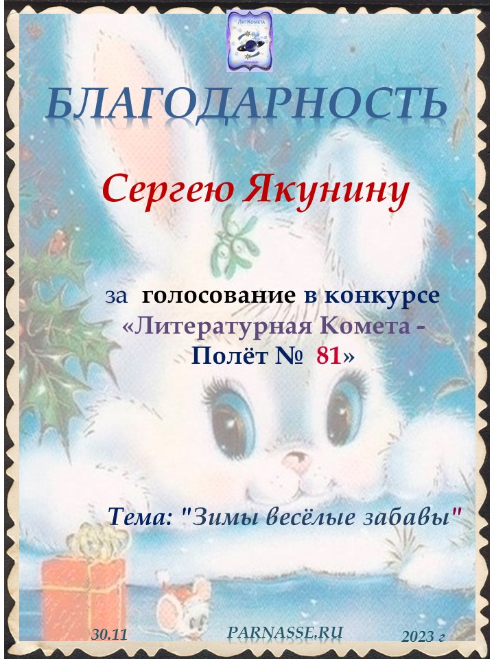 Вручается за голосование в конкурсе "ЛитКомета - Полёт № 81"