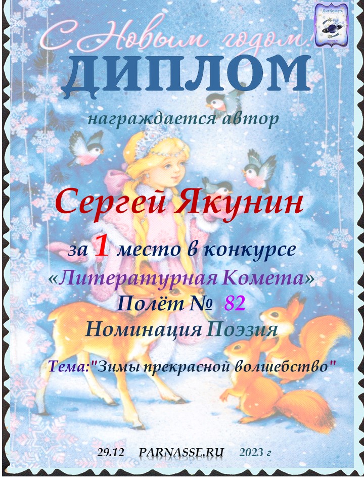 Поздравляю с занятым 1 местом в конкурсе "ЛитКомета - Полёт № 82" - Номинация Поэзия!