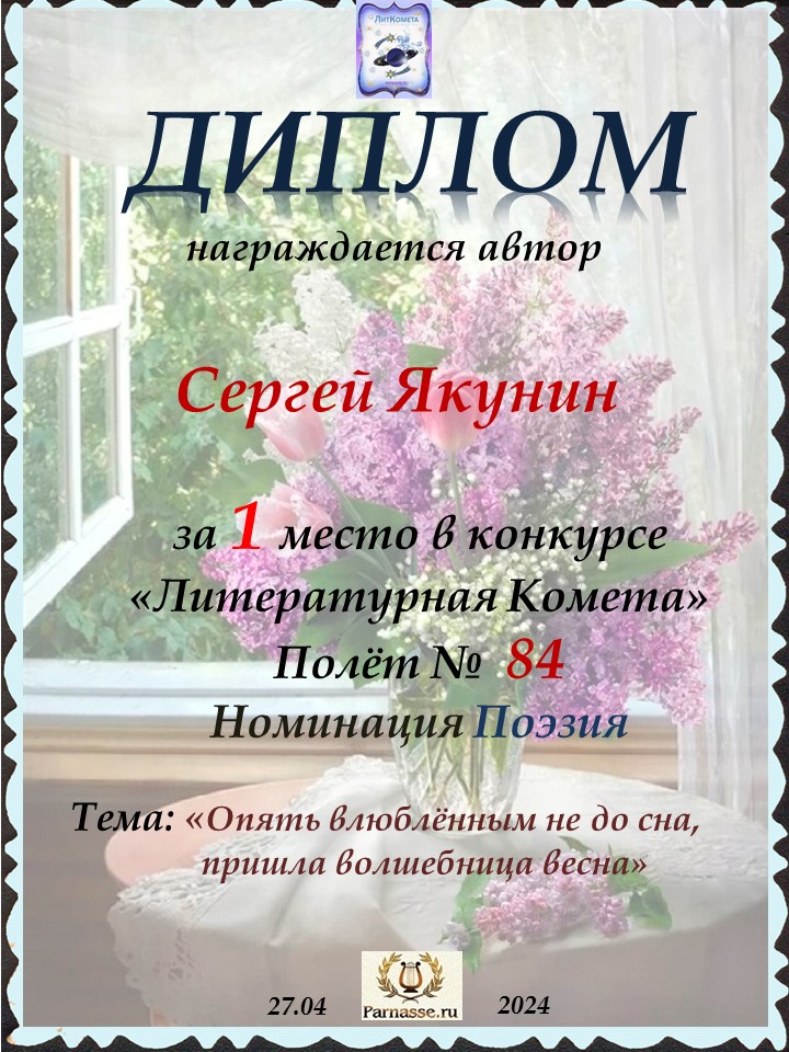 Поздравляю с занятым 1 местом в конкурсе "ЛитКомета - Полёт № 84" - Номинация Поэзия!