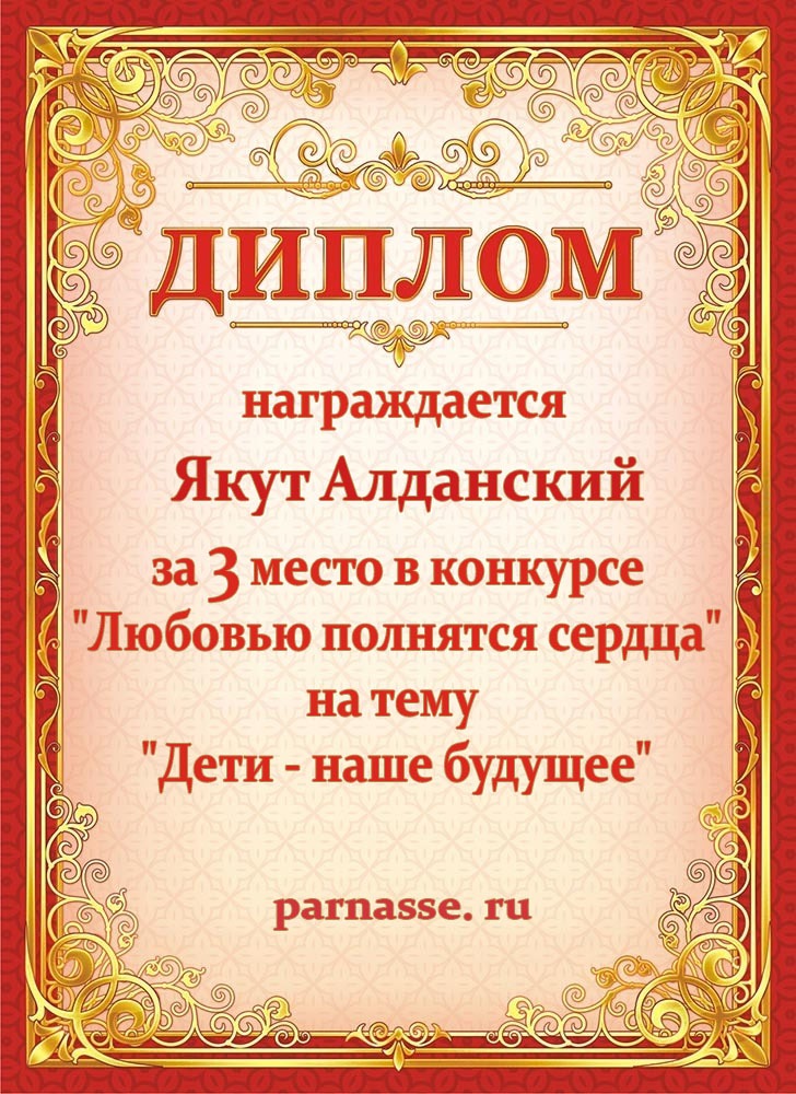 За 3 место в конкурсе "Любовью полнятся сердца" на тему "Дети - наше будущее"
