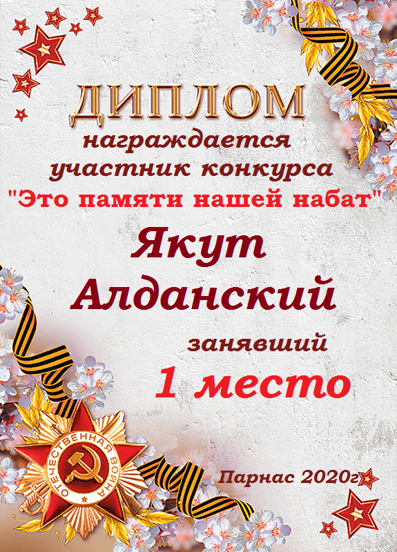 За победу в конкурсе "Это памяти нашей набат". Поздравляем с Днём Великой Победы!
