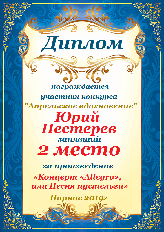За 2 место в конкурсе "Свободный Полёт" № 41