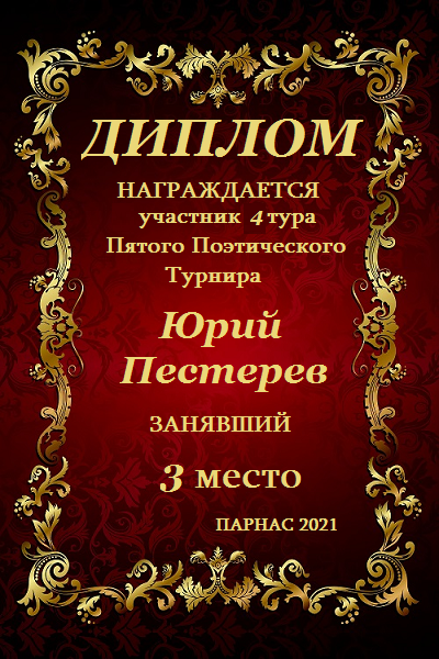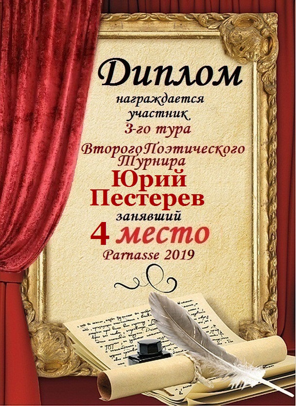 Поздравляю с занятым 3 местом в 4 туре XII Чемпионата Парнаса по прозе!