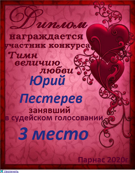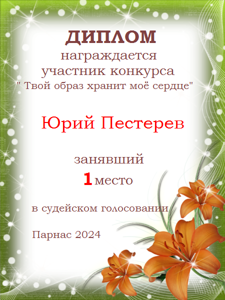 Первое место по итогам конкурса "Твой образ хранит моё сердце"