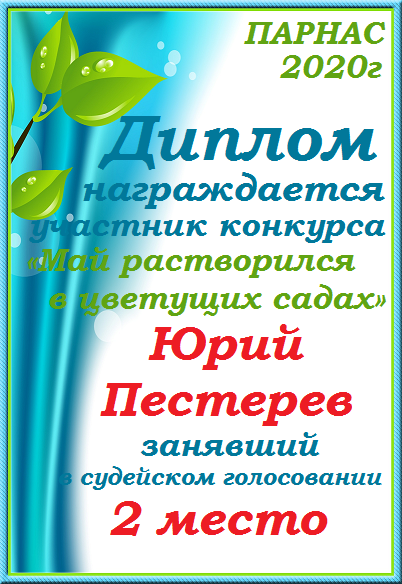 1 место место в судейском голосовании по итогам конкурса "Май хмельной стучится в окна"