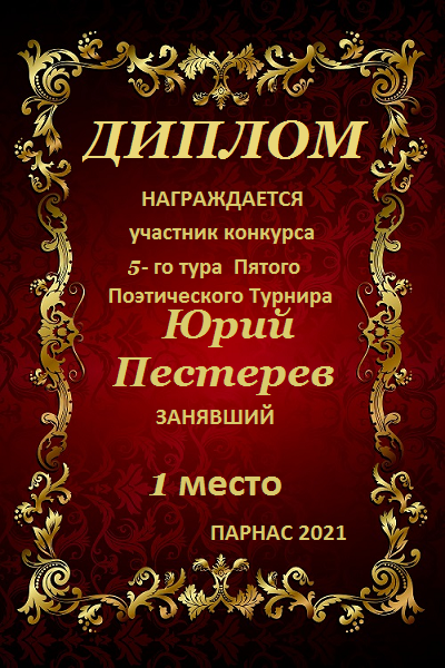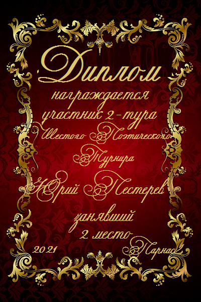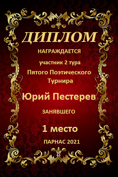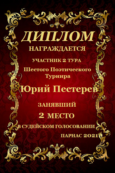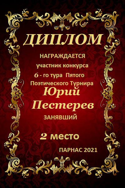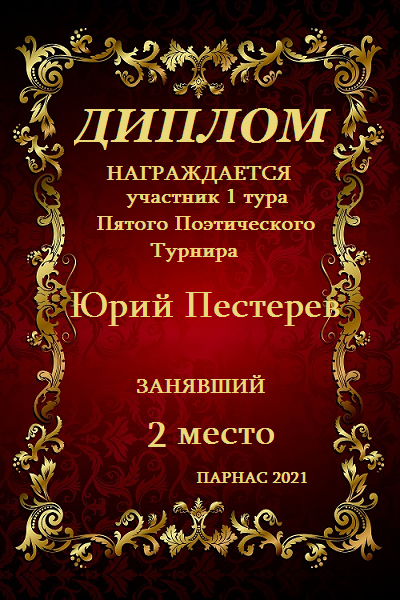 Поздравляю с занятым 2 местом в 5 туре XII Чемпионата Парнаса по прозе!