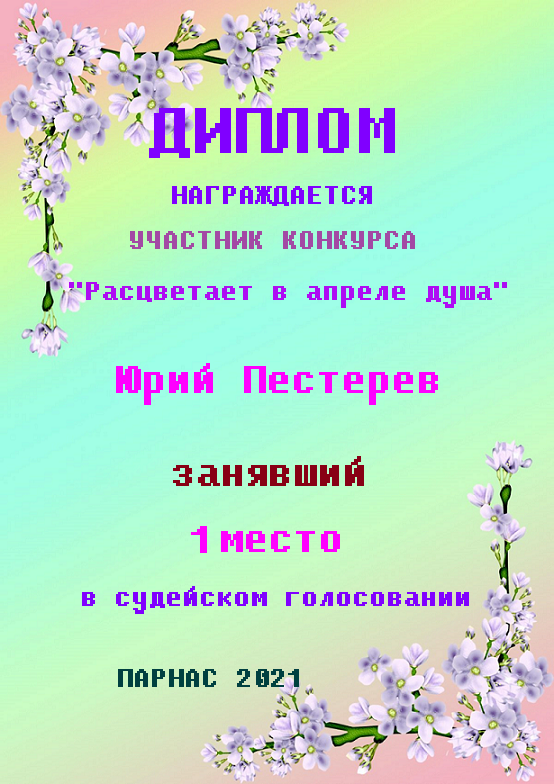 Первое место в судейском голосовании по итогам конкурса " Весна нам дарит вдохновение"