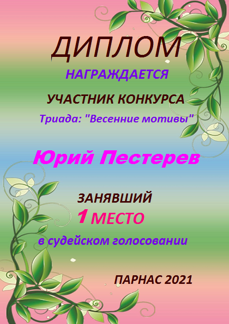 Первое место в судейском голосовании по итогам первого конкурса - триады "Весна нам дарит вдохновение"
