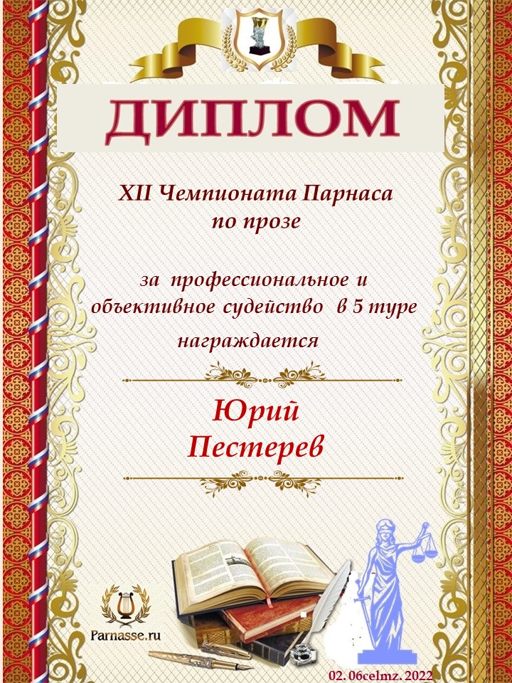 Спасибо за объективное и профессиональное судейство в 5 туре XIII Чемпионате Парнаса по прозе!