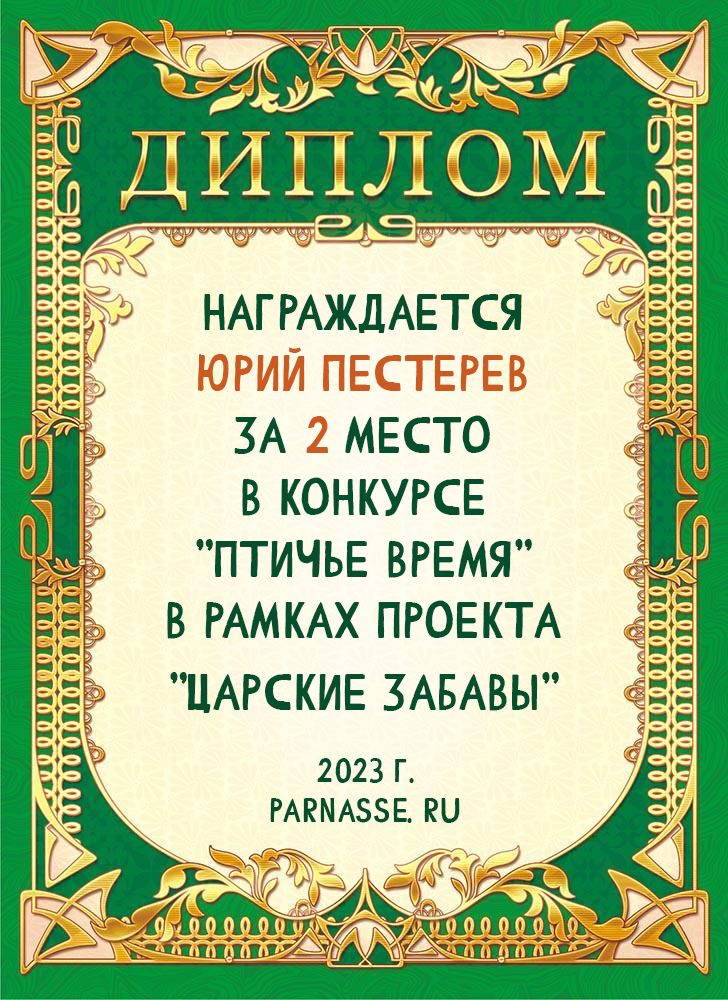 2 место в конкурсе "Птичье время" в рамках проекта Царские Забавы. Поздравляем!