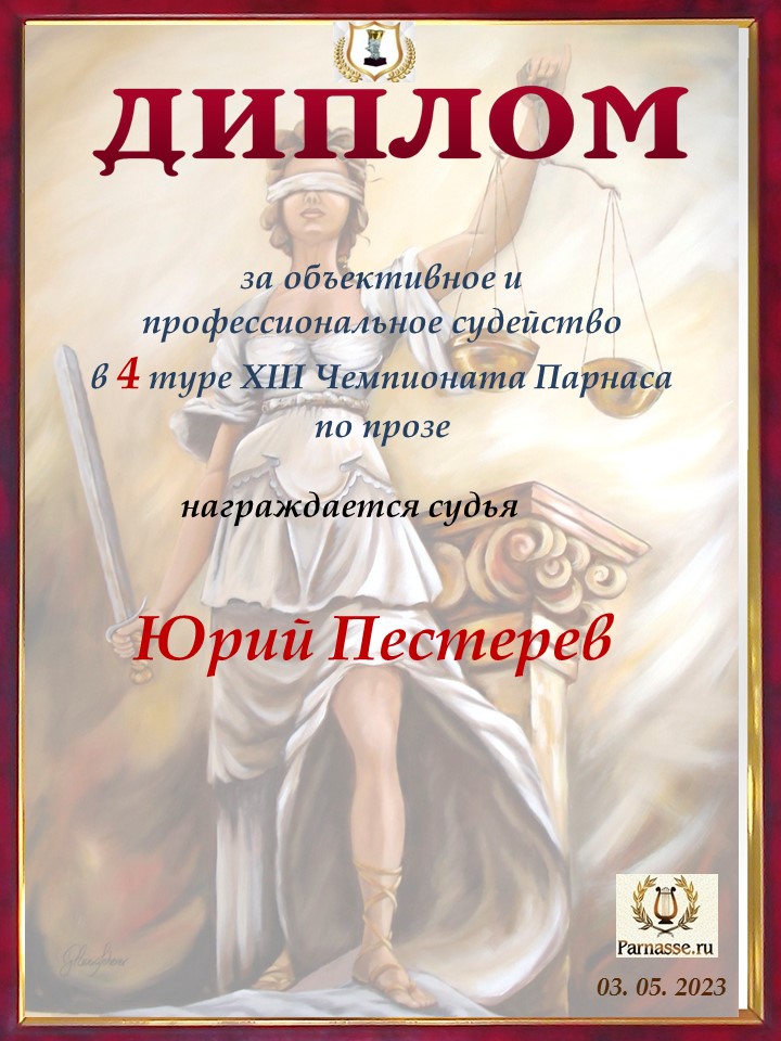 Спасибо за объективное и профессиональное судейство в 4 туре XIII Чемпионате Парнаса по прозе!