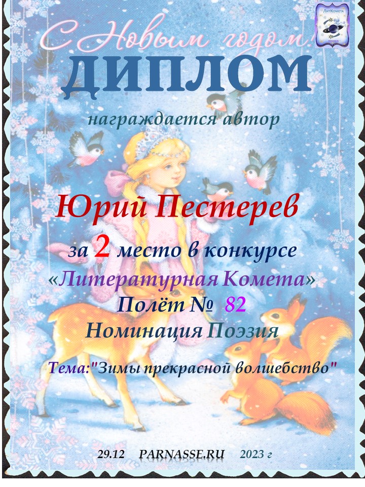 Поздравляю с занятым 2 местом в конкурсе "ЛитКомета - Полёт № 82" - Номинация Поэзия!