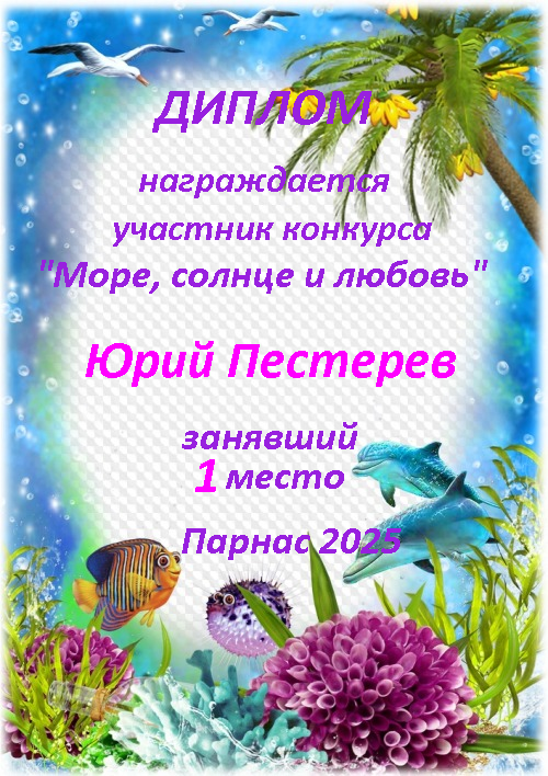 Первое место по итогам конкурса "Море, солнце и любовь"