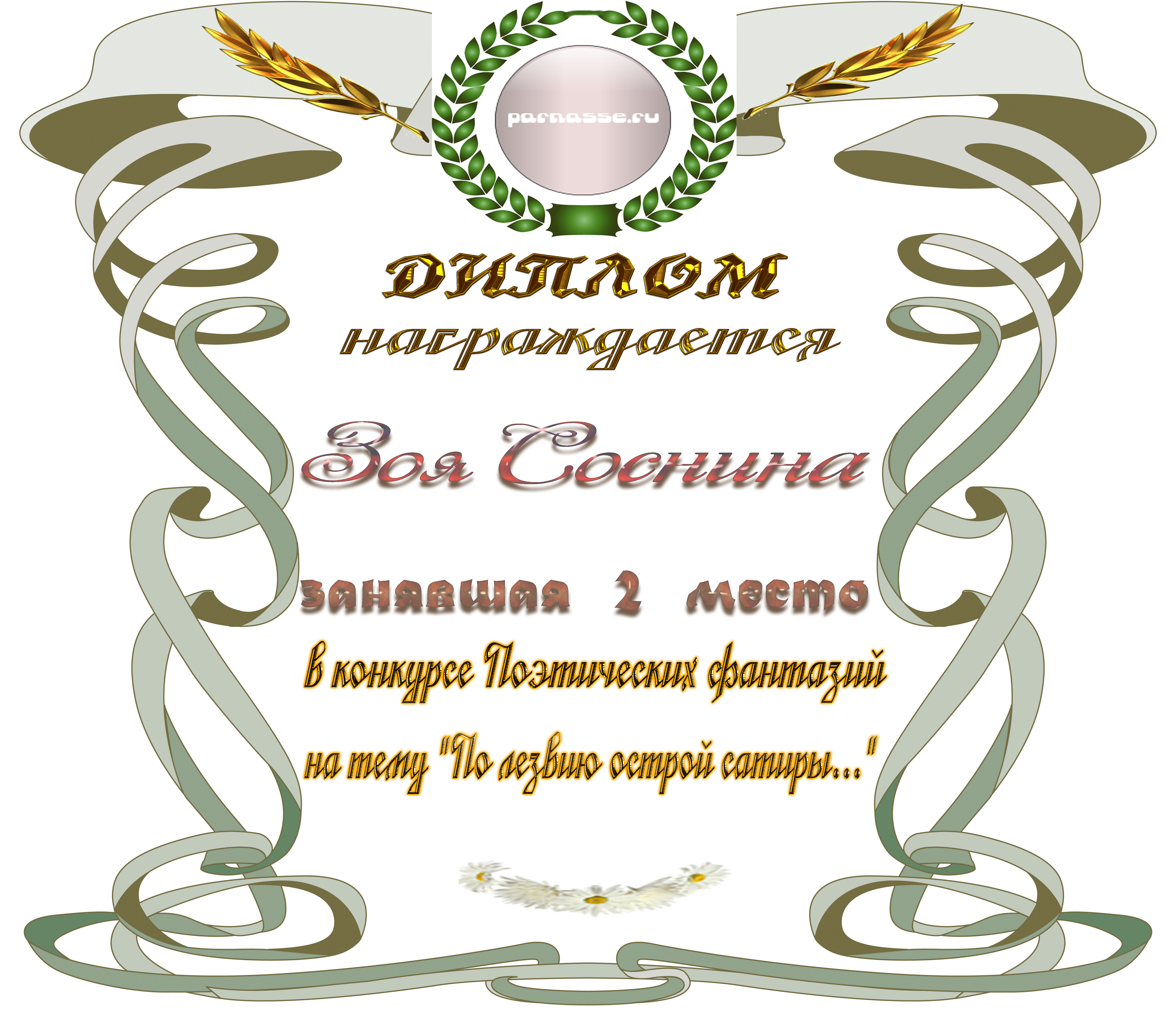 ![]() Медаль за 2 место в конкурсе Поэтических фантазий