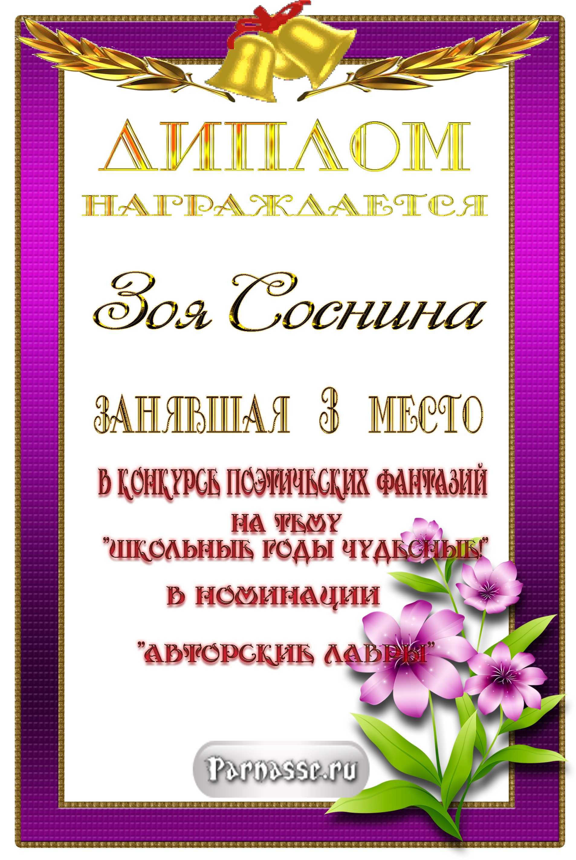 ![]() Медаль за 3 место в конкурсе Поэтических фантазий