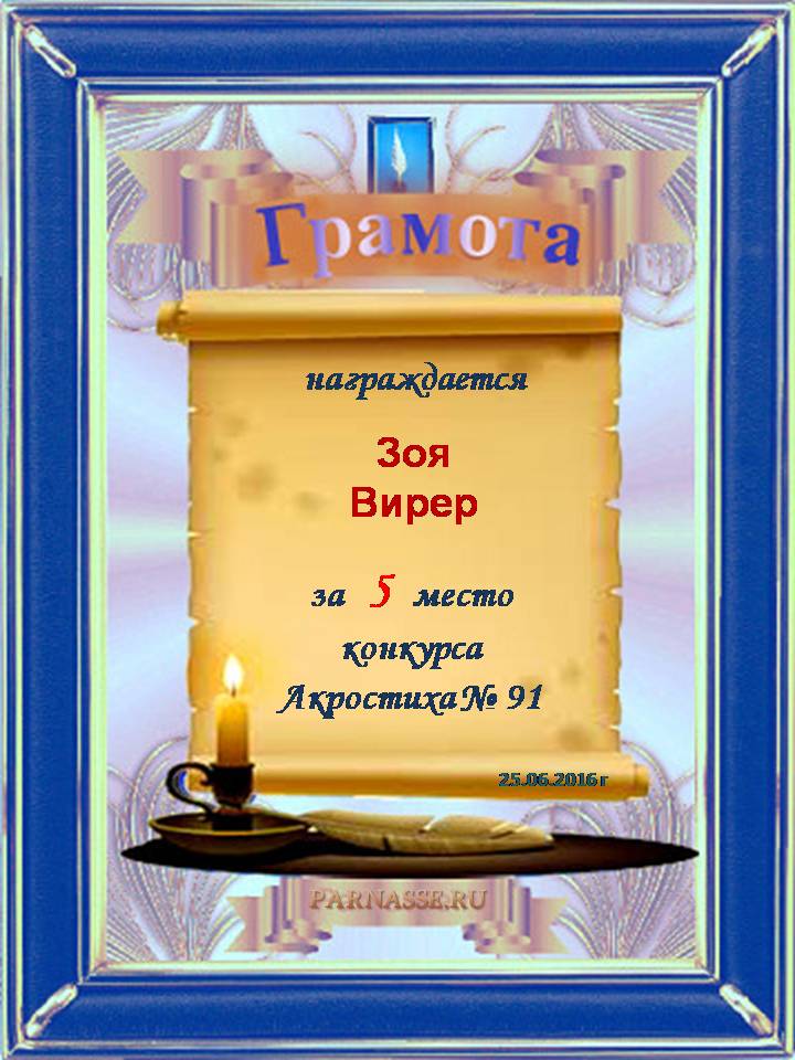 Грамота за 4 место в 120 конкурсе АКРОСТИХА (Альтернатива)! ПОЗДРАВЛЯЮ!