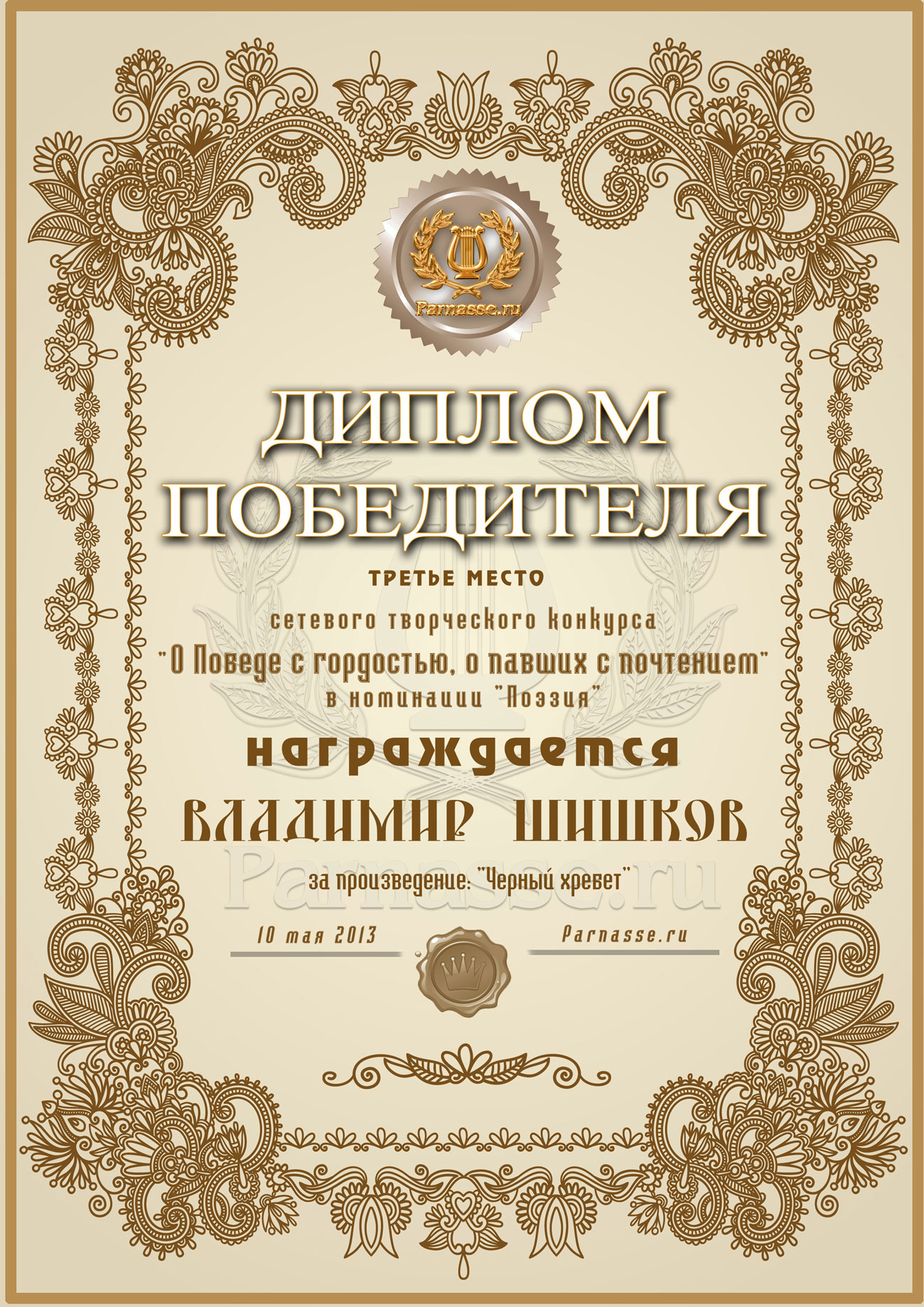 Третье место в музыкально-литературном конкурсе «О Победе с гордостью, о павших – с почтением!» Судейское голосование. Номинация в поэзии «ВЕЛИКАЯ ОТЕЧЕСТВЕННАЯ ВОЙНА»! Произведение «Чёрный хребет»! Поздравляем с заслуженной великолепной победой!